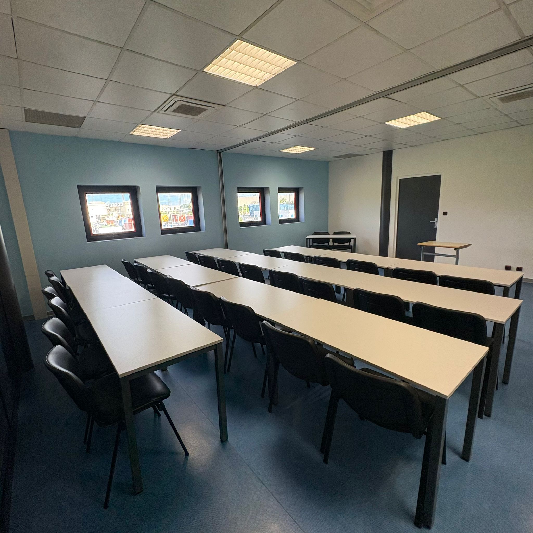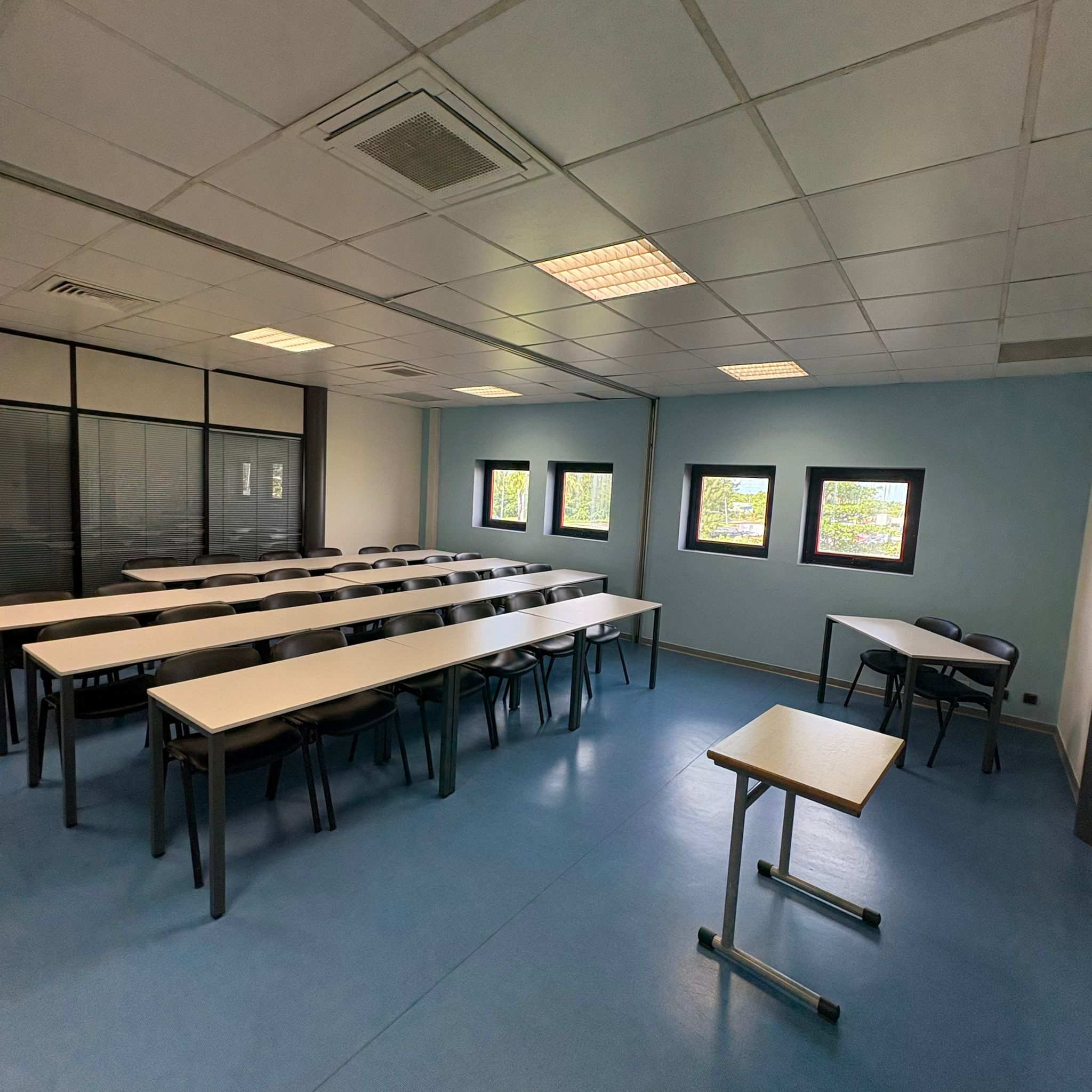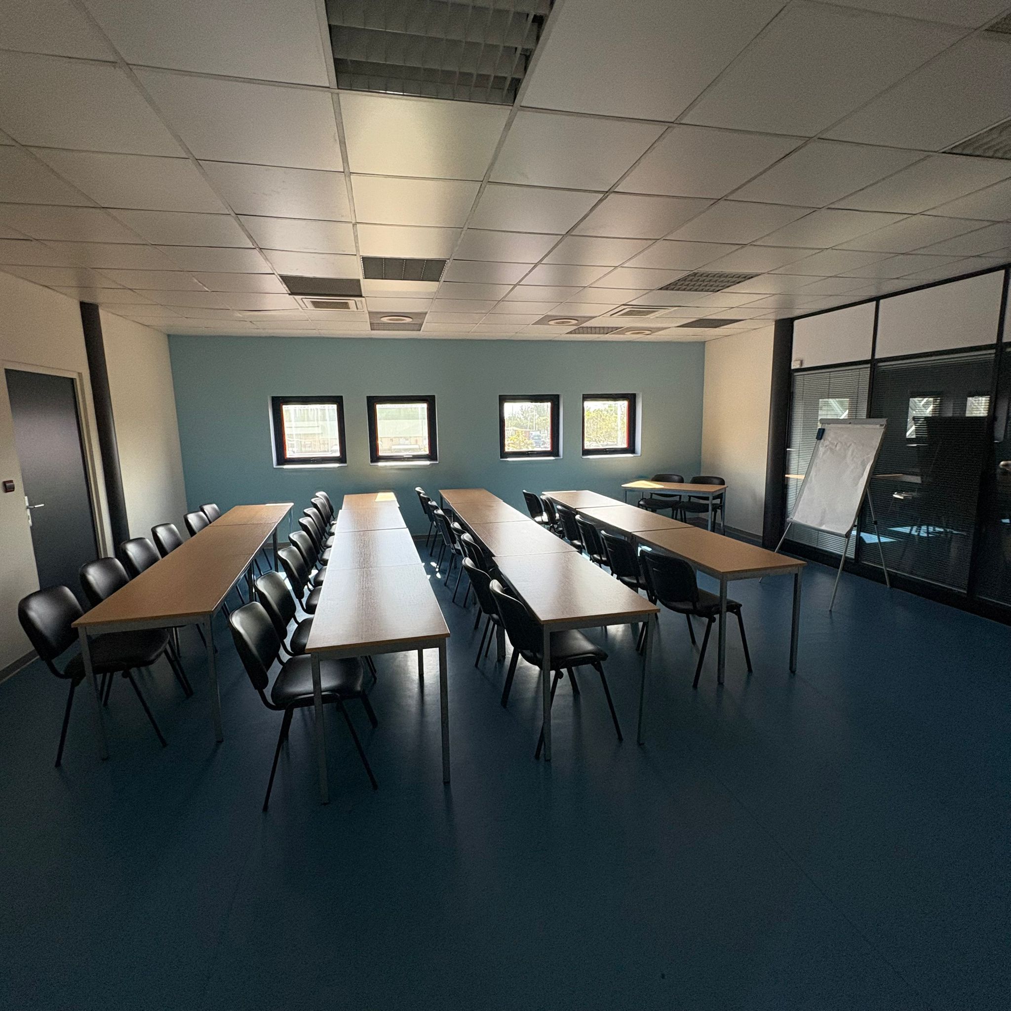 Située au 1er étage, la salle de réunion « AMERIQUE » offre un espace lumineux et flexible pouvant accueillir jusqu’à 30 personnes. Conçue pour s’adapter à vos besoins spécifiques, cette salle permet une grande liberté dans l’agencement des chaises et des tables. Vous pouvez organiser votre réunion selon différentes configurations : en théâtre, en U, en îlot ou en format classe, selon la nature de votre événement et le type d’interaction souhaité. L’espace est équipé de tout le nécessaire pour garantir le confort et l’efficacité de vos réunions : mobilier modulable, équipement audiovisuel moderne et connexion internet haut débit. Que ce soit pour une présentation, une formation ou une session de travail collaboratif, la salle « AMERIQUE » est l’endroit idéal pour des rencontres professionnelles réussies.