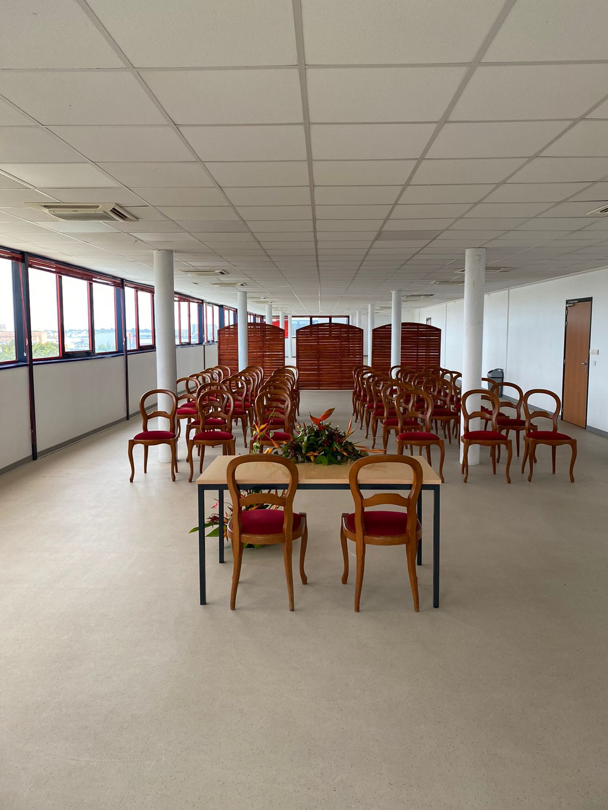 L’Open Space est une grande salle en longueur, située au dernier étage du bâtiment, offrant une vue panoramique à couper le souffle sur le port autonome de Jarry. Avec une capacité maximale de 150 personnes, cet espace polyvalent est loué nu, ce qui vous permet de l’aménager selon vos besoins spécifiques. Idéale pour des événements tels que des concours, des expositions, des conférences ou tout autre rassemblement d’envergure, l’Open Space s’adapte parfaitement à vos exigences professionnelles. Son emplacement privilégié et sa configuration flexible en font un choix stratégique pour vos projets.